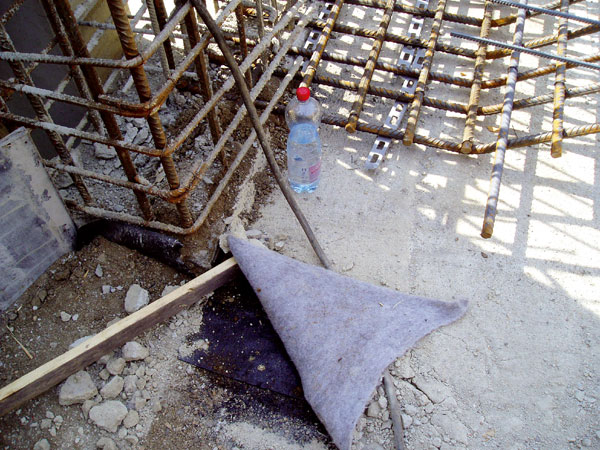 - armovania (manipulácia s armatúrou alebo jej skladovanie na nechránenej izolácii, zváranie v blízkosti vodotesných izolácií atď.),