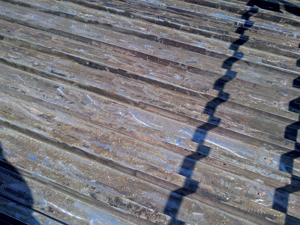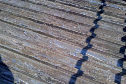 - vybrúsenie a očistenie profilovaných trapézových plechov (obr. 3), respektíve výmena poškodených plechov – odstránenie skorodovaných a nesúrodých častí, vysatie drobných častí;