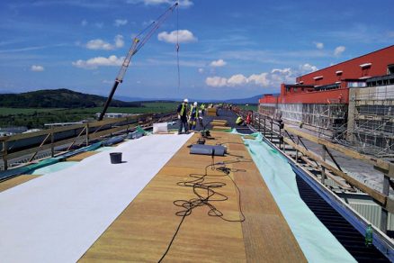 - odstránenie zatekania do priestorov budovy – zhotovením novej hydroizolačnej vrstvy z PVC-P fólie Flagon SR FR 1,8 M2 so zvýšenou požiarnou odolnosťou, ktorá oveľa lepšie prenáša dilatačné pohyby strešnej konštrukcie (v porovnaní s hydroizolačnými asfaltovými pásmi) a dokáže z dlhodobého hľadiska zabezpečiť hydroizolačnú funkciu strechy. Keďže hydroizolačné povlakové krytiny z PVC-P sú difúzne otvorené, umožňujú rýchle a bezproblémové odparenie skondenzovanej vlhkosti z konštrukcie, čím vytvárajú predpoklad na správnu funkciu tepelnoizolačnej vrstvy;
