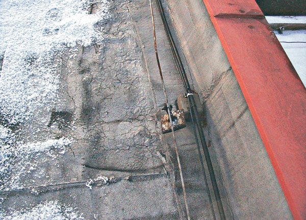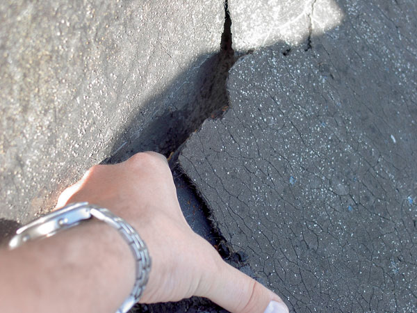 | Krytina z oxidovaných asfaltových pásov po uplynutí životnosti (bubliny, praskliny) | ||