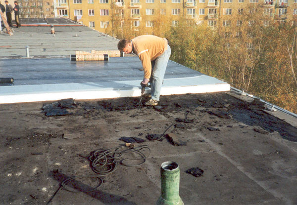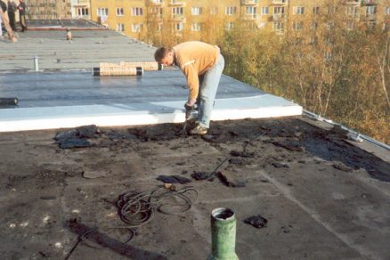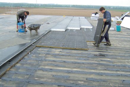 | Natavovanie novej hydroizolačnej vrstvy z modifikovaného asfaltového pásu | Sanácia strechy pridanou tepelnou izoláciou |