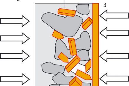 Všetky typy kryštalizačných izolačných hmôt sú založené na podobnom funkčnom princípe. Jeho základom je chemická reakcia, vďaka ktorej prebehne v pórovom a kapilárnom systéme betónu dodatočný kryštalizačný proces, katalytická reakcia, ktorej dôsledkom je zaplnenie prakticky všetkých kapilárne aktívnych pórov betónu špeciálnymi kryštálmi (obr. 1). Tento proces prebieha vždy v hmote (nikdy nie iba na povrchu), a to aj v prípade aplikácie formou náteru alebo vsypaním.