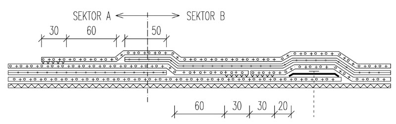 Obr.: Etapové napojenie sektorovej hydroizolácie na zvislej stene