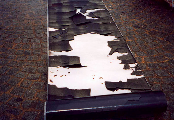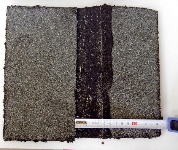 Po impregnácii sa na pásy vo vani s roztaveným asfaltom nanáša potrebná vrstva asfaltu, ktorej hrúbku upravuje špeciálny valec, alebo sa na nasýtenú vložku strieka asfaltová zmes. Takto možno nanášať na jednotlivé strany vložky rozličné zmesi. Vlastnosti týchto pásov sú však nestabilné, rozdielnosť zmesi vo vložke a na krycej vrstve vedie k nedokonalému prepojeniu vrstiev a býva príčinou rozdeľovania pásu po hrúbke, tzv. delaminácie pásu.