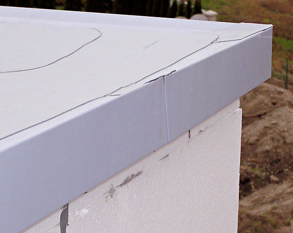 Zväčšovanie hrúbky zatepľovania obvodových plášťov vyvoláva potrebu používať stále väčšie rozvinuté šírky odkvapových plechov. Bežne sa napr. používa rozvinutá šírka 333 mm jednostranne vysunutého odkvapového profilu pri šírke atiky 600 mm. Práve tento fakt umocňuje často sa vyskytujúci nedostatok pri realizácii oplechovania, a to absentujúci spád atiky smerom k streche. Mnoho izolatérskych firiem montuje oplechovanie hydroizolačného systému na nevyspádované atiky, čo možno považovať za jasnú stavebnú nepripravenosť. Následkom toho pri použití klasického odkvapového profilu dochádza pri daždi k hromadeniu vody, ktorú aj mierny vietor strháva na fasádu v nezanedbateľnom objeme. Používanie tzv. príponiek na spevnenie oplechovania sa v týchto prípadoch stáva nevyhnutnosťou.