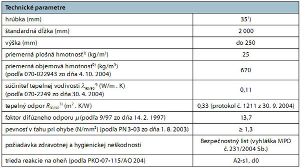 Tab. 1 Technické parametre vencovej dosky WS 35