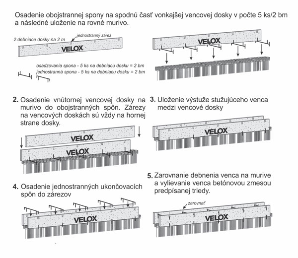 Montáž obojstranného debnenia vencov VELOX prebieha nasledovne: