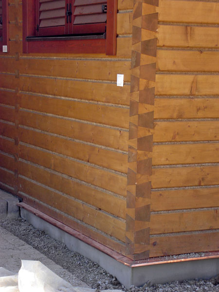 | Kotevný uholník v panelovej stavbe | Rybinový rohový spoj novodobej zrubovej konštrukcie |