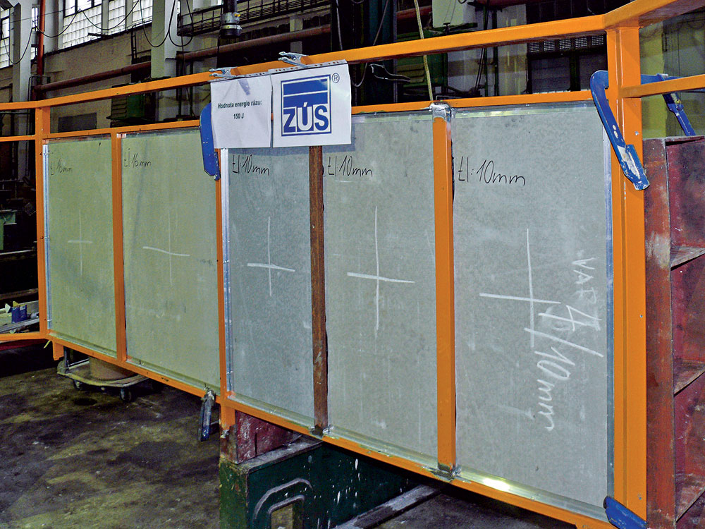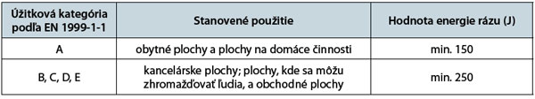 Bezpečnosť a použiteľnosť výplní zábradlí na balkónoch, terasách, lodžiách sa posudzuje podľa STN 74 3305: 1998 (Ochranné zábradlia. Základné ustanovenia). Kritickou skúškou je overenie spoľahlivosti výplne zábradlia na účinky rázového zaťaženia. Pri tomto teste musí výplň zábradlia odolať mäkkému rázu s energiou v súlade s údajmi uvedenými v tabuľke.