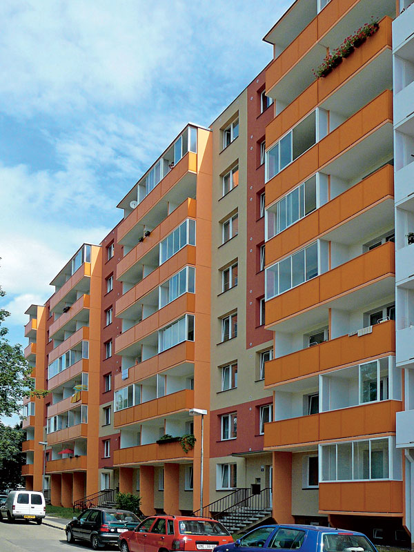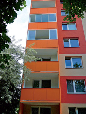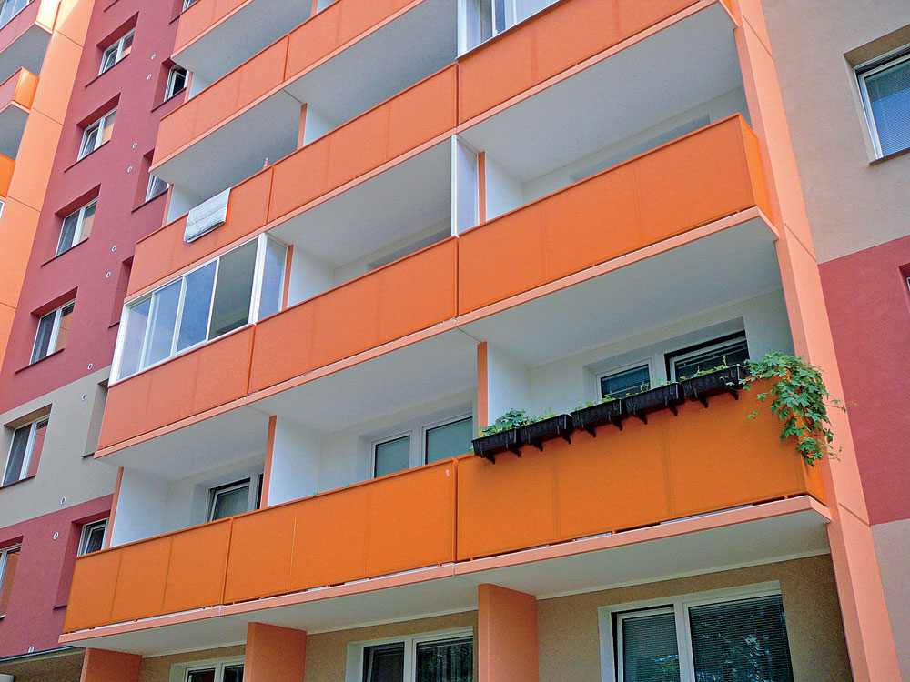 Cementotrieskové dosky s povrchovou úpravou fasádnou farbou našli uplatnenie pri kompletnej výmene zábradlí bytového domu v českom meste Kroměříž. Rekonštrukcia obvodového plášťa bytového domu na ulici K Rejdišti prebehla v roku 2007. Súčasťou stavebných prác bola aj kompletná výmena nevyhovujúceho zábradlia na balkónoch. Samotnú nosnú konštrukciu zábradlia, ktorá sa musela vzhľadom na zlý technický stav demontovať, nahradil nový rám. Nové zábradlie vrátane výplne doskami na báze cementotrieskovej dosky sa vyrobilo na mieru u dodávateľa a skompletizovalo na stavenisku. Uchytenie sa realizovalo kotvením do betónovej stropnej konštrukcie a do obvodového plášťa. Ako výplň zábradlia sa použili cementotrieskové dosky s hrúbkou 16 mm a s povrchovou úpravou fasádnou farbou vo farebnom odtieni RAL 2003 – oranžová pastelová.