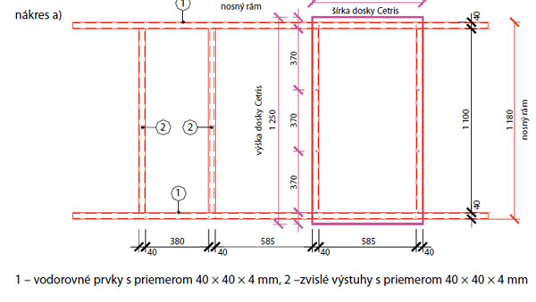 - variant rámu s vnútornými výstuhami, ku ktorému je cementotriesková doska prichytená skrutkami s viditeľnou hlavou. Požiadavke na mäkký ráz vyhovuje cementotriesková doska s hrúbkou od 14 mm (nákres a);