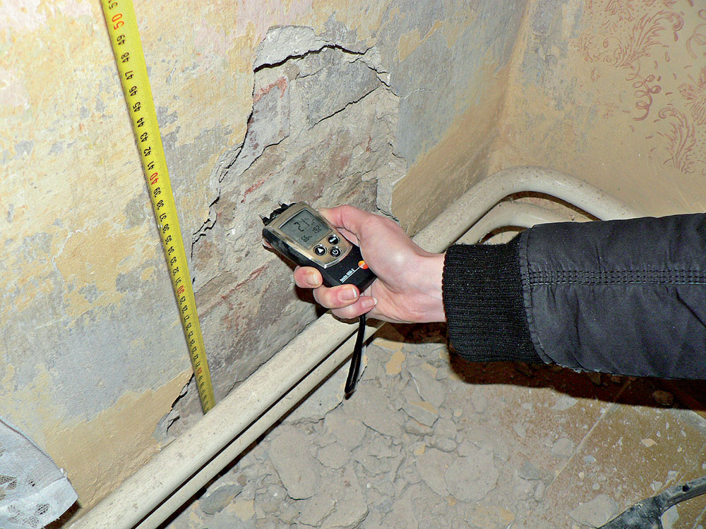Stavebnofyzikálnym prieskumom sa zisťuje vlhkosť stavby, pH a salinita muriva.