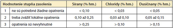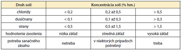 Tab. 5 Hodnotenie pôsobenia iónov solí v murive podľa Önorm B 3355-1