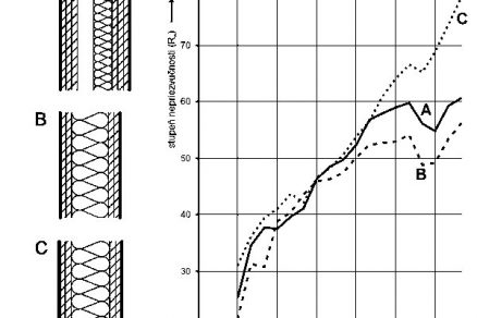 – ohybovo mäkké steny, ak m´= 20 kg/m2, fk = 3151 Hz a d = 20 mm (napr. priečky z DTD dosiek, tabuľového skla a pod.)