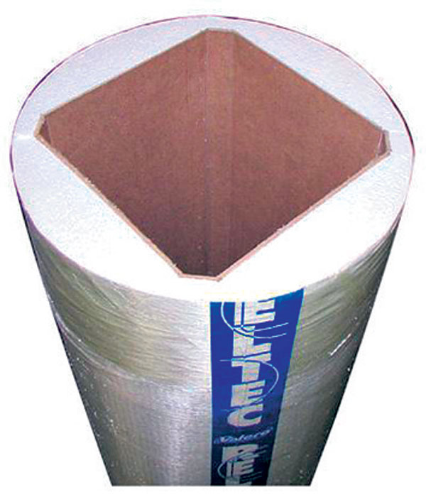 Papierové debnenie možno použiť aj na realizáciu stĺpov so štvorcovým (obr. 2a) a obdĺžnikovým (obr. 2b) prierezom. V prípade štvorcových stĺpov je na trhu k dispozícii debnenie s rozmermi od 150 × 150 do 800 × 800 mm, pričom vonkajší priemer debnenia je 241 až 1 165 mm. Hmotnosť týchto debnení sa pohybuje od 2,10 do 17,80 kg/m. Za hodinu možno vybetónovať 2 až 6 m stĺpa pri spotrebe betónu od 0,023 do 0,640 m3 na 1 m stĺpa (podľa hrúbky stĺpov).