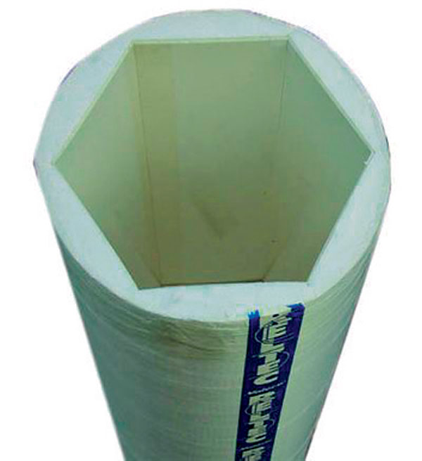 Vonkajší priemer debnenia na realizáciu stĺpov so šesťuholníkovým prierezom (obr. 2c) je od 288 do 578 mm. Pri použití debnenia s priemerom 288 mm možno vytvoriť stĺp s priemerom 250 mm a pri priemere debnenia 578 mm je priemer hotového stĺpa 500 mm. Šírka jednej strany stĺpa sa pohybuje od 144 do 289 mm. Vonkajší priemer debnenia je 394 až 682 mm. Za hodinu možno vybetónovať 3 až 6 m stĺpa pri spotrebe betónu od 0,053 do 0,228 m3 na 1 m stĺpa. Hmotnosť debnenia sa pohybuje od 3,74 do 7,45 kg/m.