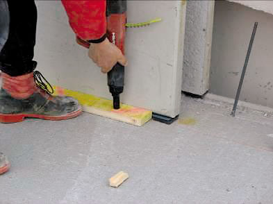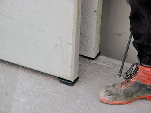 Po osadení je potrebné ukotviť pätu steny drevenou fošňou, ktorá sa priskrutkuje samoreznými skrutkami, prípadne zaistí nastreľovacími klincami. To zabezpečí stabilitu steny pri betonáži.