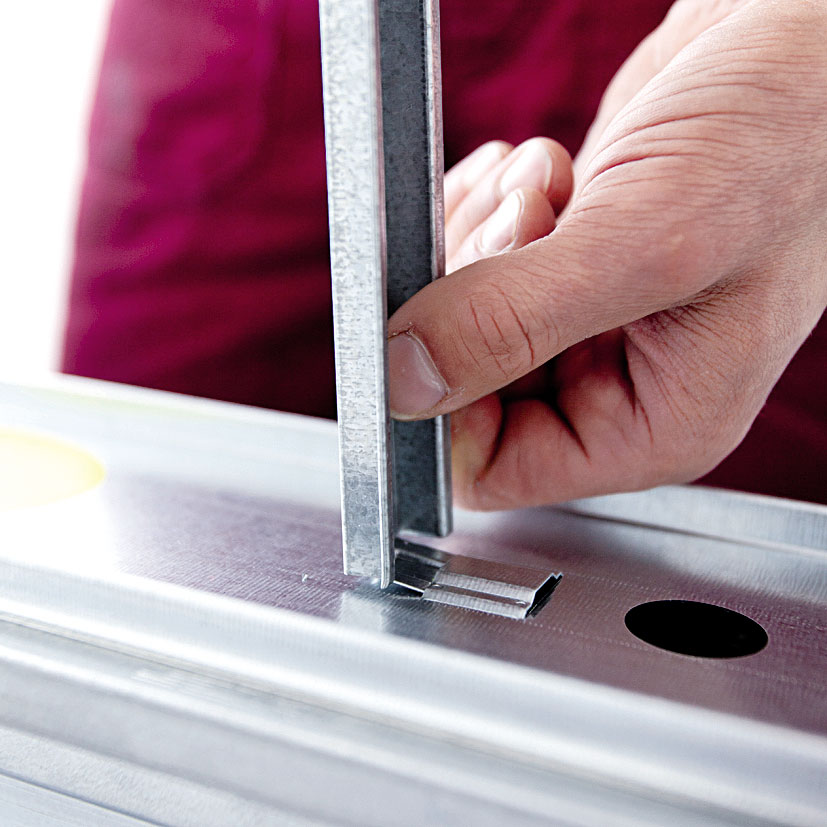 Puzdro sa vloží do podlahového profilu UW a pripevní sa k už namontovaným profilom CW.