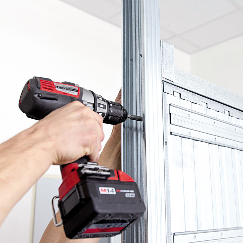 • Náradie: vodováha, akumulačný skrutkovač, aplikačná pištoľ, podložky, nôž na sadrokartón, rovná lata, nožnice na plech