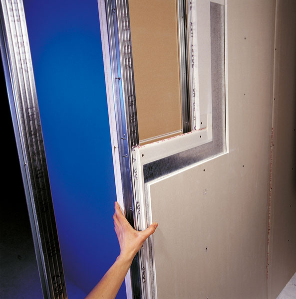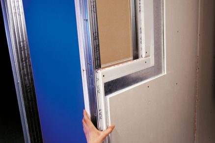 Bezpečnostná priečka s vloženým plechom medzi doskami Prichytávanie sadrokartónových dosiek na podkonštrukciu z oceľových profilov