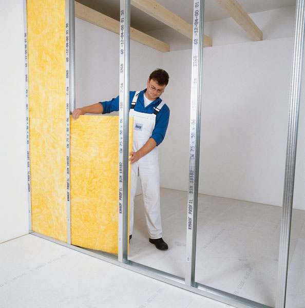 Osadzovanie minerálnej izolácie do priečky medzi profily