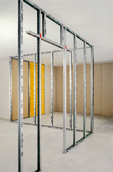 Konštrukciu tvoria vodorovné a zvislé profily. Profily CW sa používajú ako stojky, UW profily sa upevňujú ako vodiace prvky na podlahu a strop a do nich sa vkladajú CW profily. Bočnice CW profilov majú 50 mm a bočnice UW profilov 40 mm. Dĺžky CW profilov sa pohybujú v rozpätí od 2 500 do 6 000 mm. UW profily sa vyrábajú v dĺžke 4 000 mm, sú v nich predpripravené kruhové otvory vo vzdialenostiach 800 mm na upevnenie profilu do podlahy a stropu pomocou príchytky (tzv. hmoždinky). Iným druhom sú 2 mm hrubé profily označené UA. Používajú sa tam, kde sa predpokladá väčšie namáhanie (pri zárubniach, upevnenie kuchynskej linky na priečku atď.). Profily sa na podlahe a strope uchytávajú pomocou príslušných pätiek. Sú zaradené do normy EN 14195.