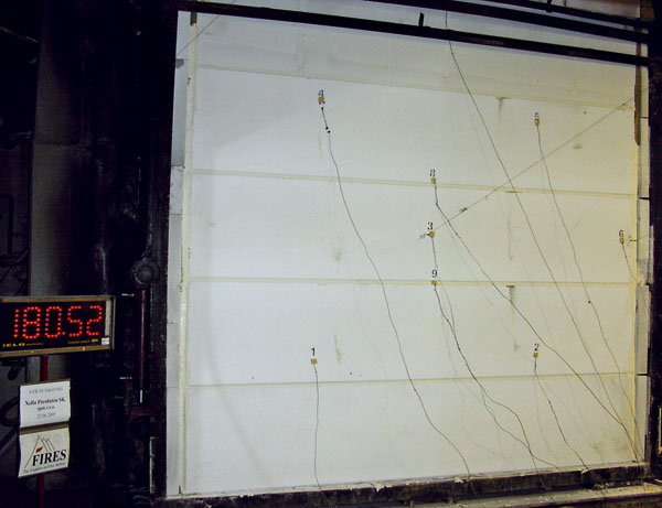 Požiarnu odolnosť stavebnej konštrukcie z bieleho pórobetónu, resp. jej schopnosť odolávať účinkom požiaru bez porušenia funkcie, preverila séria skúšok podľa STN EN 1365-1, STN EN 1363-1 a STN EN 1363-2.