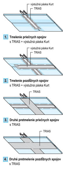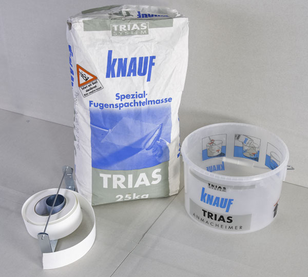 Knauf Trias – Sadrový tmel s vysokou odolnosťou proti tvorbe prasklín a prispôsobenou farbou a nasiakavosťou ku kartónu dosiek. Tmel Trias v spojoch medzi doskami s hranou HRAK sa neprepadáva, minimalizuje sa vznik prasklin je potrebné menej pracovných krokov s dosiahnutím rovných povrchov, ktoré šetria čas.