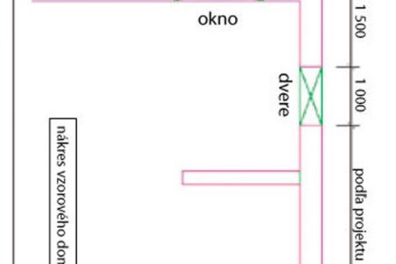 V súlade s projektovou dokumentáciou sa na podkladovej betónovej doske vyznačia pevné body – rohy, dvere, okná, napojenie vnútorných stien (obr. 2).