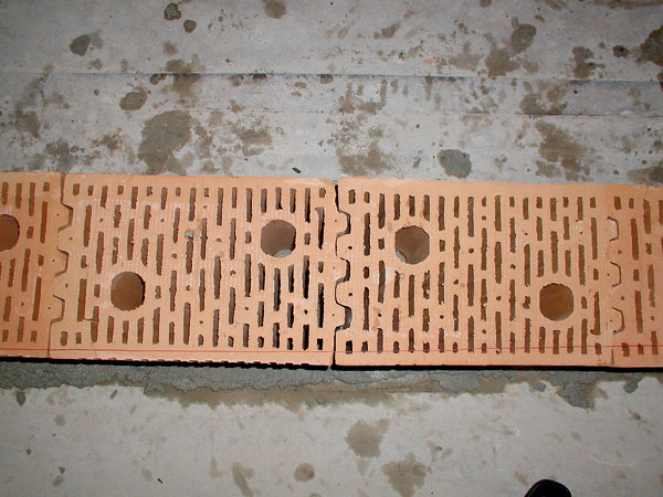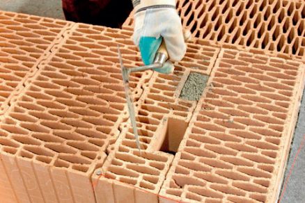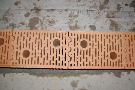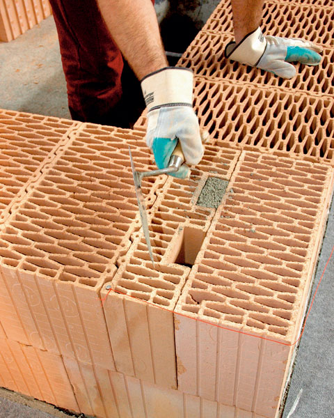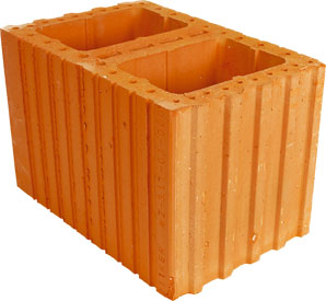Príklad keramickej debniacej tvarovky. Po vymurovaní treba tvarovky vyplniť betónom. Tieto sa murujú na maltu pre tenké škáry a používajú sa na akusticky deliace steny