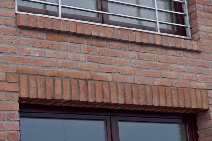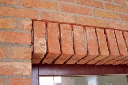 - použitím prefabrikovaných prekladov zo špeciálnych tvaroviek z lícových tehál zhotovených na stavbe,