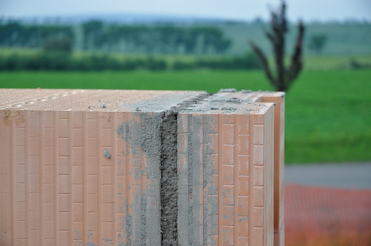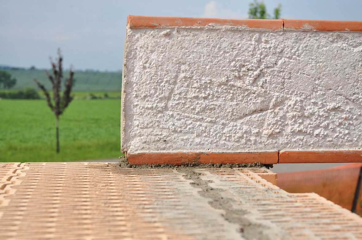 - Nosný keramický preklad – prefabrikát z betónu C 20/25, vystužený drôtom KARI v špeciálnych keramických tvarovkách; trieda reakcie na oheň A1; súčiniteľ tepelnej vodivosti λ = 1,29 W/(m . K)