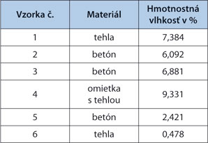 - meranie hmotnostnej vlhkosti v odobratých vzorkách,