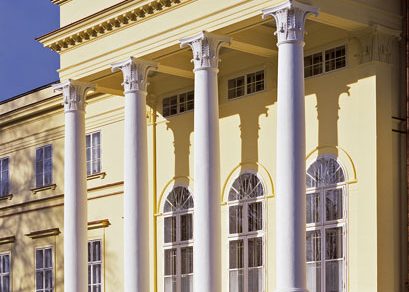 Empírový zámok KinskýchZámok v Kostelci nad Orlicou, sídlo rodu Kinských, postavil viedenský architekt Jindřich Koch v rokoch 1829 až 1835 v empírovom slohu. Pretože v očiach minulého režimu nebola táto ojedinelá, slohovo čistá architektonická pamiatka postavená šľachtou „hodná nového človeka“, dlhé roky slúžila výskumnému ústavu chovu ošípaných. Je teda pochopiteľné, že keď sa zámok v 90. rokoch minulého storočia navrátil pôvodným majiteľom, bol úplne zdevastovaný. Práce na záchrane tohto objektu, na opravu ktorého prispieval finančnými prostriedkami aj český štát, trvali päť rokov.