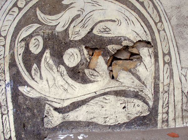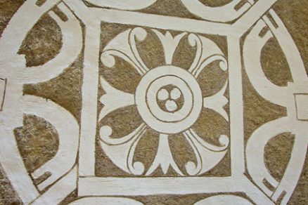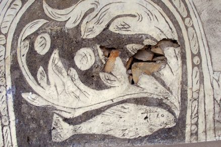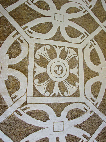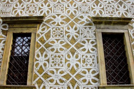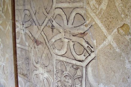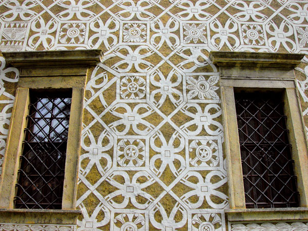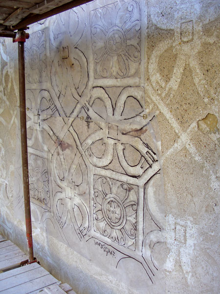 | Stav sgrafita pred reštaurovaním | Reštaurované renesančné sgrafito |