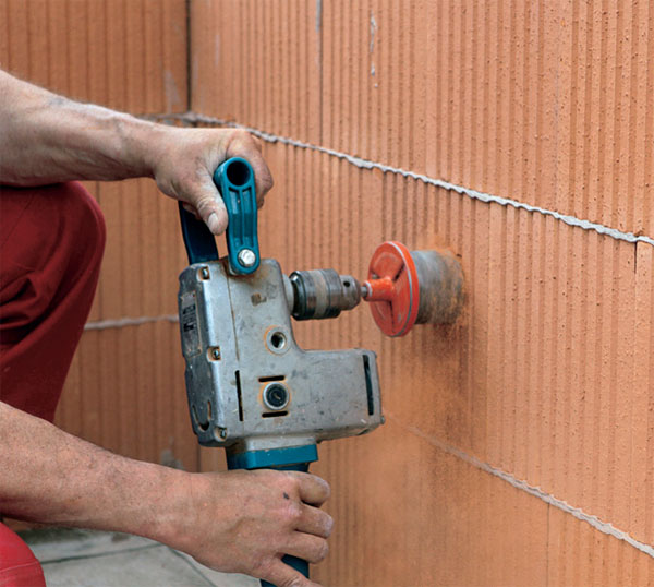 Otvory na vypínače, zásuvky a rozvodné škatule elektrických vedení sa vytvárajú pomocou vŕtačiek s jadrovým vrtákom určeným na tento účel (obr. 17).