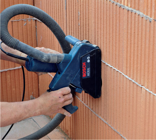 | Obr. 14 Vyplnenie styčnej škáry maltou | Obr. 15 Suché rezanie ručnou elektrickou pílou |