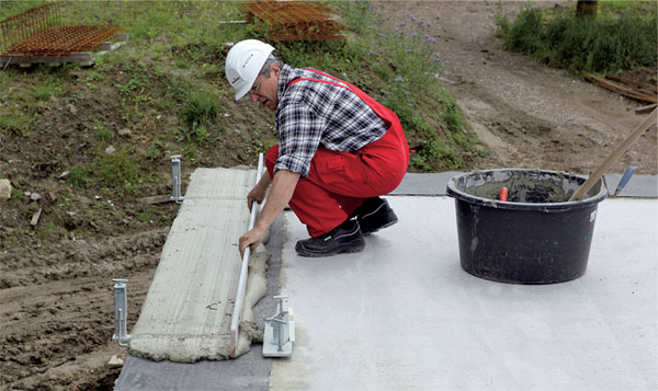 Na presné nanesenie zakladacieho maltového lôžka sa odporúča používať nivelačnú súpravu pozostávajúcu z dvoch šírkovo a výškovo nastaviteľných urovnávacích líšt.