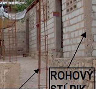 Stavby z takýchto blokov majú zvyčajne v rohoch umiestnené železobetónové stĺpiky, medzi ktoré sa murujú samotné steny. Stĺpiky sú veľmi subtílne, prispôsobené hrúbke blokov, ktorá málokedy presiahne 15 cm. Výstuž stĺpikov sa navrhuje odhadom a väčšinou je nedostatočná. V prípade železobetónových stropov nedochádza k previazaniu výstuže stĺpov a stropných dosiek.