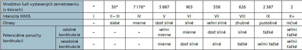 Tab. 1 Odhad počtu osôb vystavených jednotlivým intenzitám zemetrasenia podľa MMIS