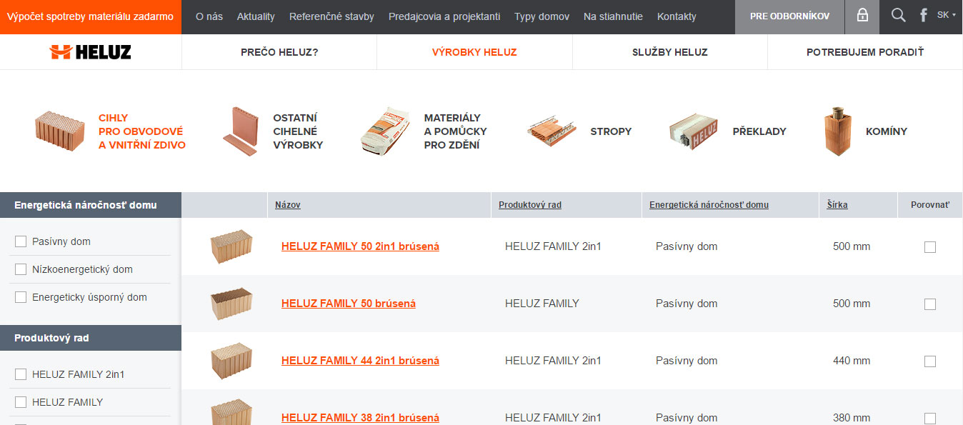 „Sme modernou českou firmou s inovatívnymi produktmi. Dobre vieme, že webová stránka je našou vizitkou a jedným z kľúčových miest na komunikáciu so zákazníkom. Nový web bol už nevyhnutnosťou. Podaril sa a ja osobne z neho mám veľkú radosť,“ hovorí vedúca marketingu Eliška Klimešová. Dominantným vizuálnym prvkom úvodnej strany webu je 3D model domu, ktorý slúži ako navigácia k jednotlivým typom produktov. HELUZ si však okrem špičkových tehál zakladá aj na nadštandardnom zázemí. Ponúka klientom množstvo asistenčných služieb, či už je to doprava materiálu na stavbu zadarmo alebo napríklad expertné poradenstvo priamo na mieste. Veľká časť webu sa preto venuje tejto oblasti. Vzájomné prepojenie všetkých sekcii umožňuje perfektnú orientáciu.