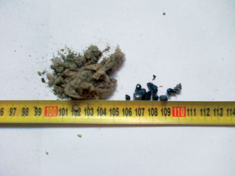 | Obr. 8 Vytriedené kamienky | Obr. 9 Porovnanie množstva separovaného piesku a vaty |