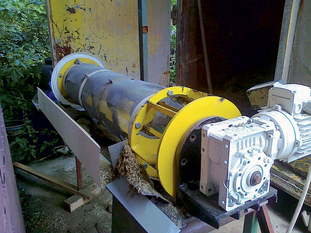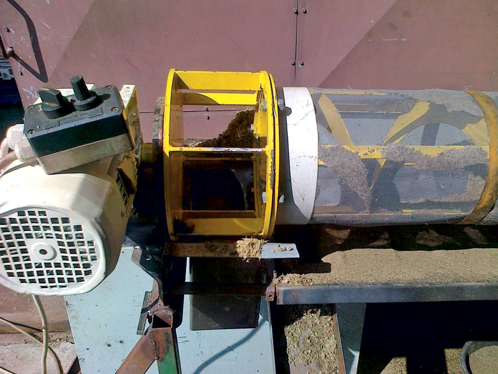Na stanovenie veľkosti separačného zariadenia (obr. 5 a 6) sa realizovali praktické skúšky na laboratórnom preosievači s priemerom 250 mm a s dĺžkou 900 mm, na ktorom sa nachádzalo sito s veľkosťou ôk 0,25 až 4 mm a s priepustnosťou 2,2 až 2,8 m3/h.