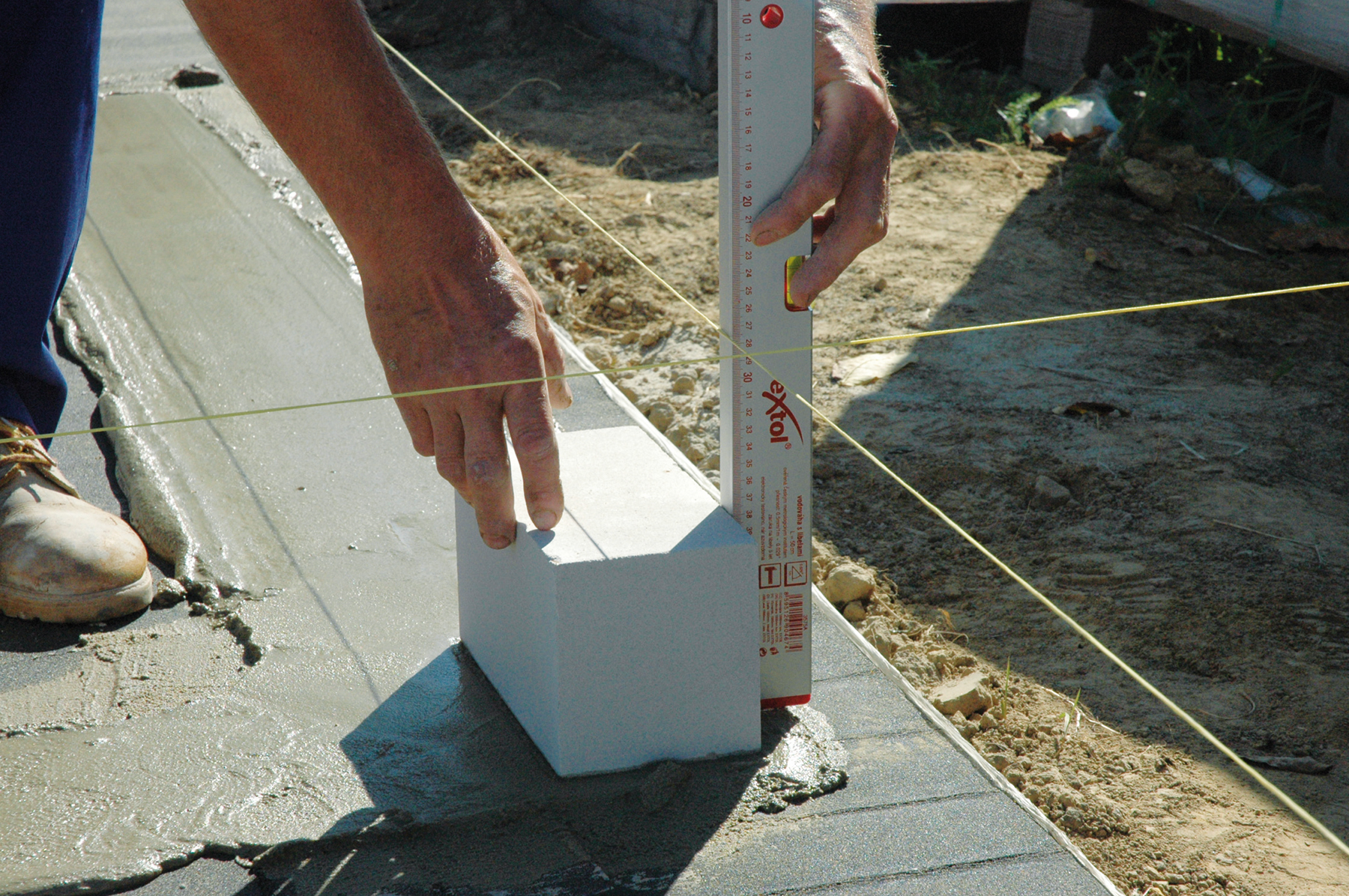 Minimálna hrúbka vrstvy zakladacej malty realizovaná v jednej vrstve je po zatvrdnutí 10 mm. Maximálna hrúbka vrstvy nanesená v jednej vrstve je po zatvrdnutí 30 mm. V prípade potreby väčšej hrúbky vrstvy na vyrovnanie nerovností je potrebné naniesť maltu vo viacerých vrstavách po 20 mm, a to vždy až po zatvrdnutí predchádzajúcej vrstvy. Prvý rad vápennopieskových tehál sa kladie do zakladacej malty a pomocou vodováhy a gumového kladiva sa koriguje jeho poloha do roviny.