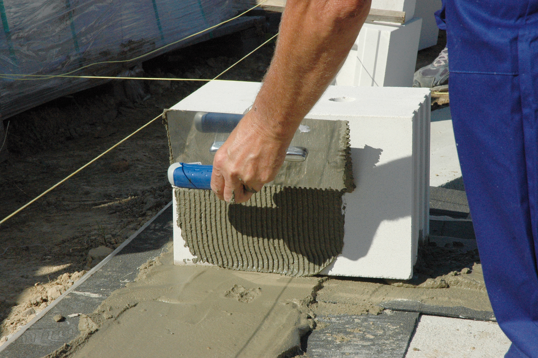 » Vysokopevnostná cementová ručná murovacia malta so zvýšenou šmykovou pevnosťou určená na murovanie a zakladanie stavebných konštrukcií z vápennopieskového muriva.