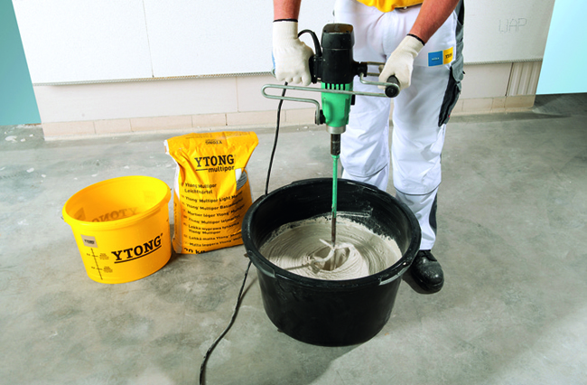 Suchá malta sa za stáleho miešania pomaly nasype do 30-litrovej nádoby s približne 7,5 až 8 l vody. Odporúča sa použiť miešadlo zapojené do elektrickej vŕtačky a vymiešať pomalými otáčkami na požadovanú konzistenciu. Zmiešaná malta sa nechá približne 5 minút zrieť a opätovne sa premieša.