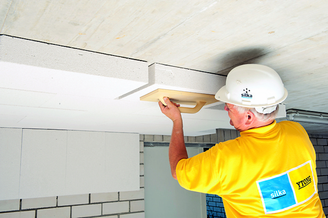 Pri celoplošnom vystierkovaní stropu zatepleného minerálnou izolačnou doskou sa na povrch v tenkej vrstve nanesie ľahká lepiaca malta. Na realizáciu 2- až 3-milimetrovej vrstvy postačuje 2 až 2,5 kg/m2 tejto malty. Nanáša sa antikorovým hladidlom.