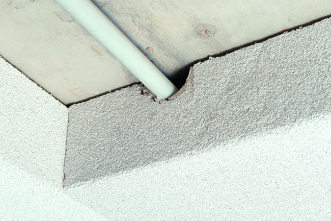 Izolačné dosky sa dajú prispôsobiť aj existujúcim vedeniam a otvorom v stene či v strope. Tým sa zabezpečí homogénna izolačná rovina. Lepiaca malta sa nanesie aj do upravenej časti dosky.
