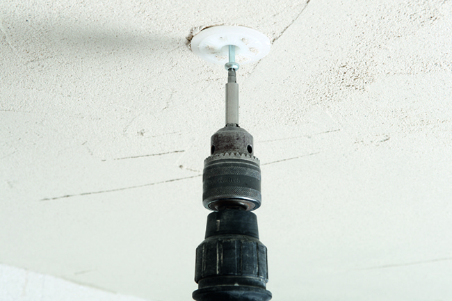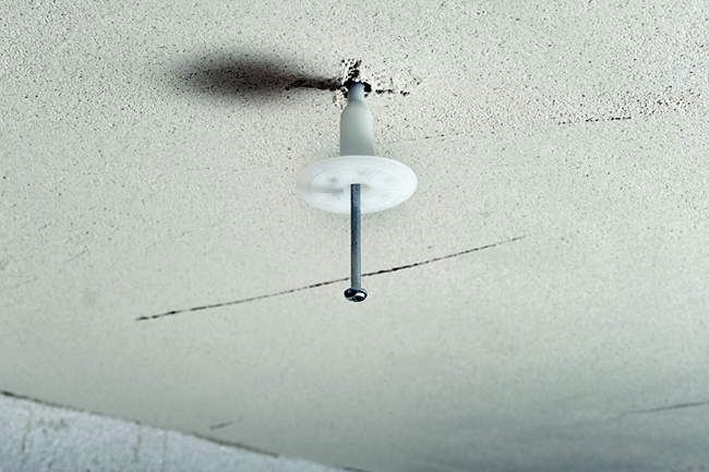 Ak je únosnosť podkladu existujúceho masívneho stropu v spojení s izolačným systémom len podmienečná, musia sa minerálne izolačné dosky doplnkovo ukotviť jednou kotvou v strede dosky.