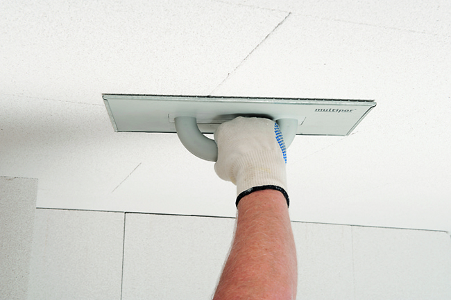 Špeciálne brúsne hladidlo umožňuje jednoduché vyrovnanie minerálnych izolačných dosiek nad hlavou, pretože sa z neho nesype prach.